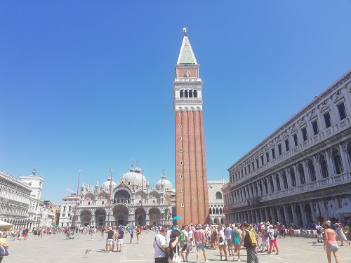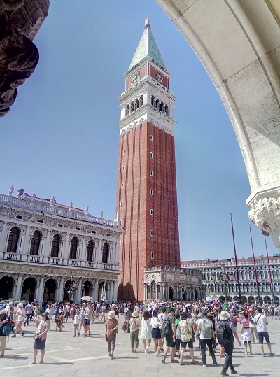 Zvonik na trgu sv. Marka je najvišja stavba v mestu in je s svojimi 98 metri statusni simbol mesta. Izvirnik je bil zgrajen v 11. stoletju vendar se je pod svojo težo zrušil leta 1902. Na njegovem mestu so kasneje zgradili kopijo.