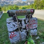 Pot nato vodi mimo manjše jame vse do razpotja, kjer se v desno odcepi pot k Črnemu jezeru. Nadaljujemo naravnost po široki poti, ki se še nekoliko strmeje vzpne in nas po nekaj minutah pripelje do doma na Komni.