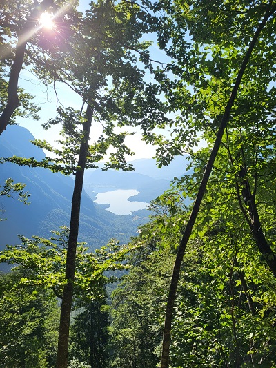 Pot naprej nas pripelje na prvo od označenih 48 serpentin in se počasi vije skozi gozd z zmernim vzponom, vse do zadnje, 48 serpentine s katere se nam odpre lep pogled na Bohinjsko jezero.