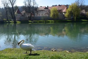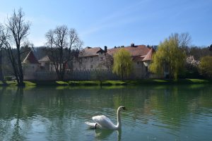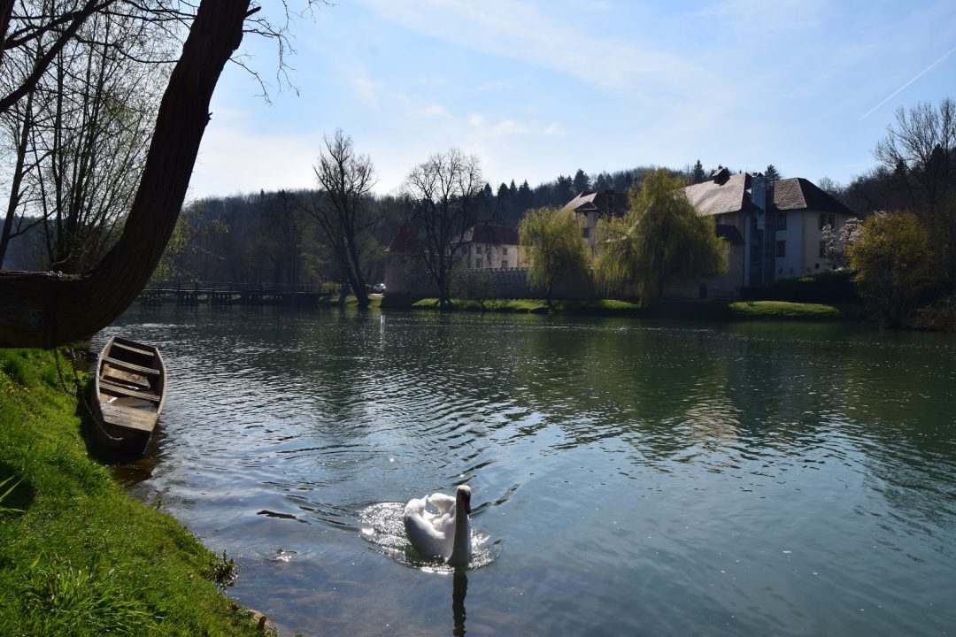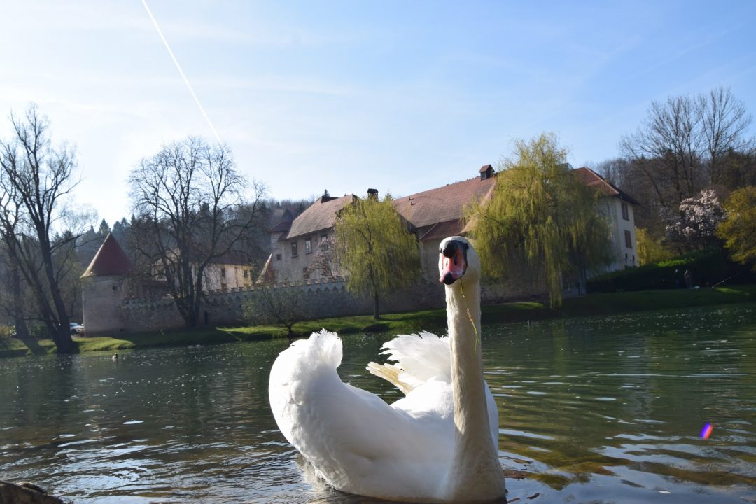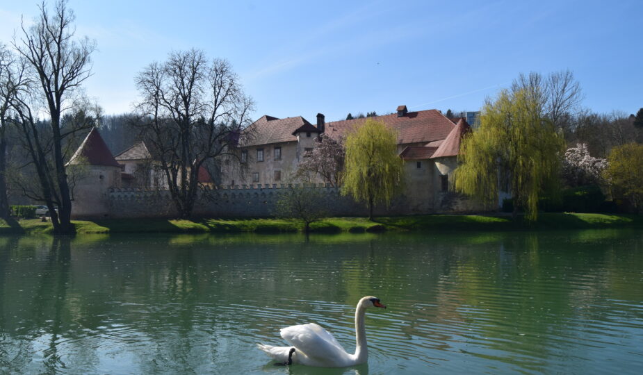 Slikovita okolica, zelena reka Krka, leseni mostovi,… vabijo na sprehod po grajskem parku in njeni okolici. V idilični naravni lepoti lahko uživamo med opazovanjem čudovitih belih labodov. So prijazni, lepi in elegantni, ko plavajo. Zelo so fotogenični in radi se slikajo.