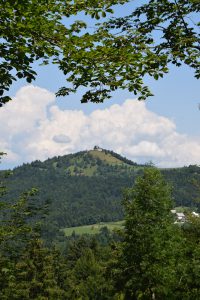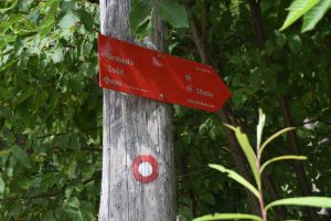 Po cesti hodimo še približno 10 minut, nakar pridemo na gozdno pot, ki ima nekaj spustov in vzponov. Gozdna pot s katere se nam odpre nekaj razgleda na Sv. Jakob in ostalo pokrajino, pa nas po približno uro hoje pripelje do kamnitega pobočja, ki se začne strmo vzpenjati in daje vtis prave visokogorske pokrajine. Do vrha imamo le še nekaj korakov.