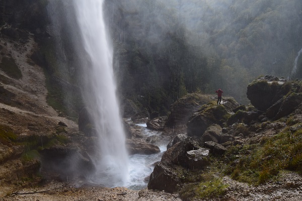 Že med potjo ves čas poslušamo glasno bučanje slapa. Pogled nanj je mogočen, občudujemo njegov mogočen padec vode in  vodne kapljice pršijo vse naokrog.